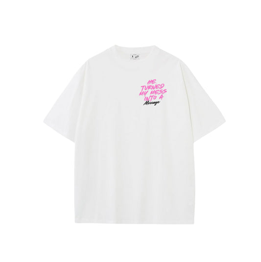 “MESS INTO MESSAGE”-OVERSIZED WHITE TEE