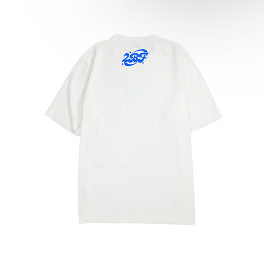 “MESS INTO MESSAGE”-OVERSIZED WHITE TEE (BLUE LETTER)